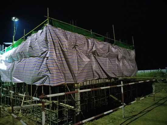 在施工現(xiàn)場(chǎng)各項(xiàng)施工有序進(jìn)行,為了克服冬季施工環(huán)境惡劣對(duì)工程質(zhì)量和安全的影響,項(xiàng)目部采取搭設(shè)暖棚、保暖加熱等有效措施,保證施工進(jìn)度和質(zhì)量。