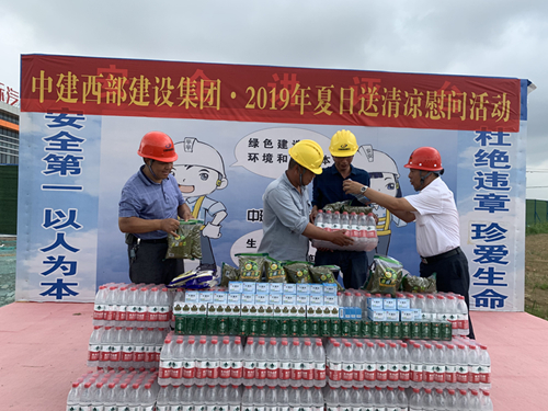 為了確保建筑工人的身體健康和工地的生產(chǎn)安全,中建西部建設(shè)集團(tuán)組織開展了“2019年夏日送清涼慰問活動”,為戰(zhàn)在高溫一線的工人送去慰問和關(guān)懷。