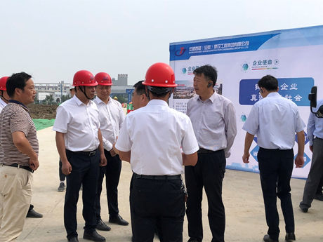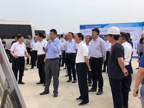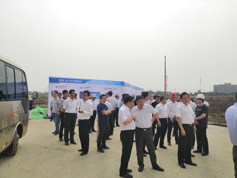 2020年6 月20 日上午,全省貫徹“六穩(wěn)”重大項(xiàng)目集中開工現(xiàn)場推進(jìn)會(蚌埠分會場)暨蚌埠市6月份重點(diǎn)項(xiàng)目開工動員會如期舉行,9時(shí)20分,在市委書記汪瑩純的帶領(lǐng)下,市領(lǐng)導(dǎo)、縣區(qū)和市直部門主要負(fù)責(zé)同志乘車來到大富科技(蚌埠)研發(fā)總部項(xiàng)目。在大富科技安徽區(qū)域總經(jīng)理張軍華、中建西部總經(jīng)理王越、多金集團(tuán)副總經(jīng)理童飛等人的陪同接待下,蚌埠市委書記汪瑩純、副書記、市長王誠等一行50多人蒞臨大富科技(蚌埠)研發(fā)總部項(xiàng)目現(xiàn)場參觀考察,了解項(xiàng)目開工建設(shè)情況。項(xiàng)目負(fù)責(zé)人對項(xiàng)目設(shè)計(jì)、規(guī)劃、工程進(jìn)展等問題一一匯報(bào)。