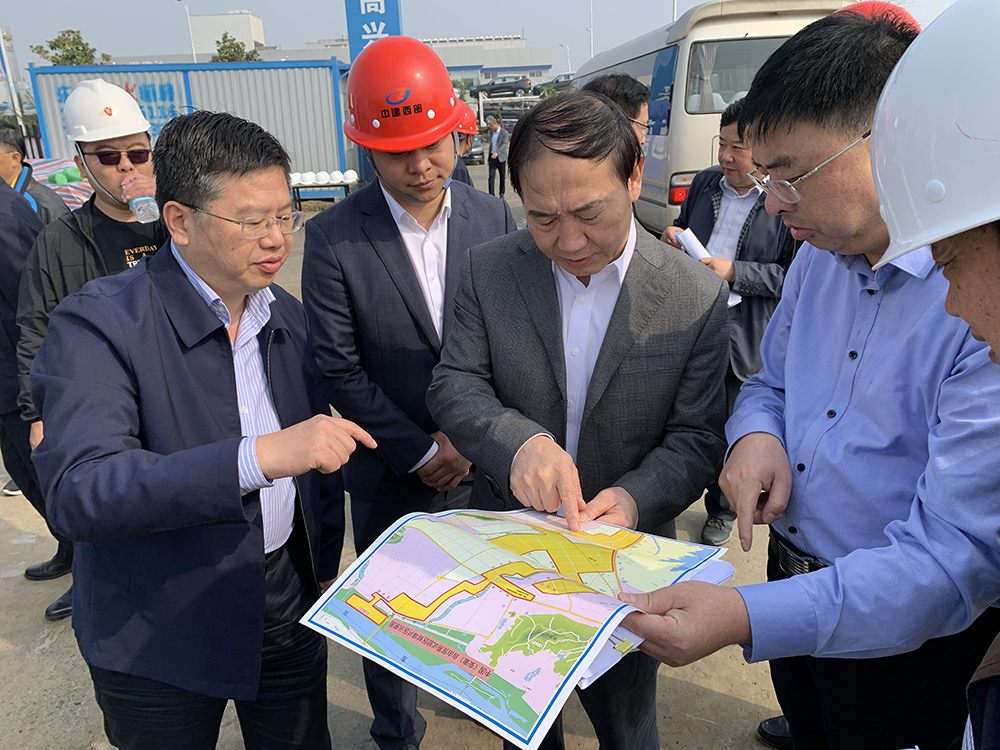 2020年10月17日上午,在蚌埠市委書記汪瑩純的帶領下,市委市政府和市直部門主要負責同志實地考察大富科技(蚌埠)研發總部項目。大富科技經理楊紫山、中建西部總經理王越、多金集團副總經理童飛等人陪同,并對項目設計、規劃、工程進展等問題做了詳細的匯報。