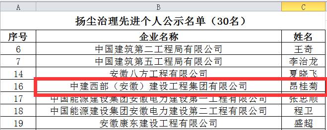 近日,合肥市建筑工程協會傳來喜訊, 2021年度合肥市建筑業優秀企業、單項先進企業、先進個人名單的評選已出爐,中建西部(安徽)建設工程集團有限公司斬獲多項榮譽——2021年度安全管理先進企業和揚塵治理先進個人稱號。
