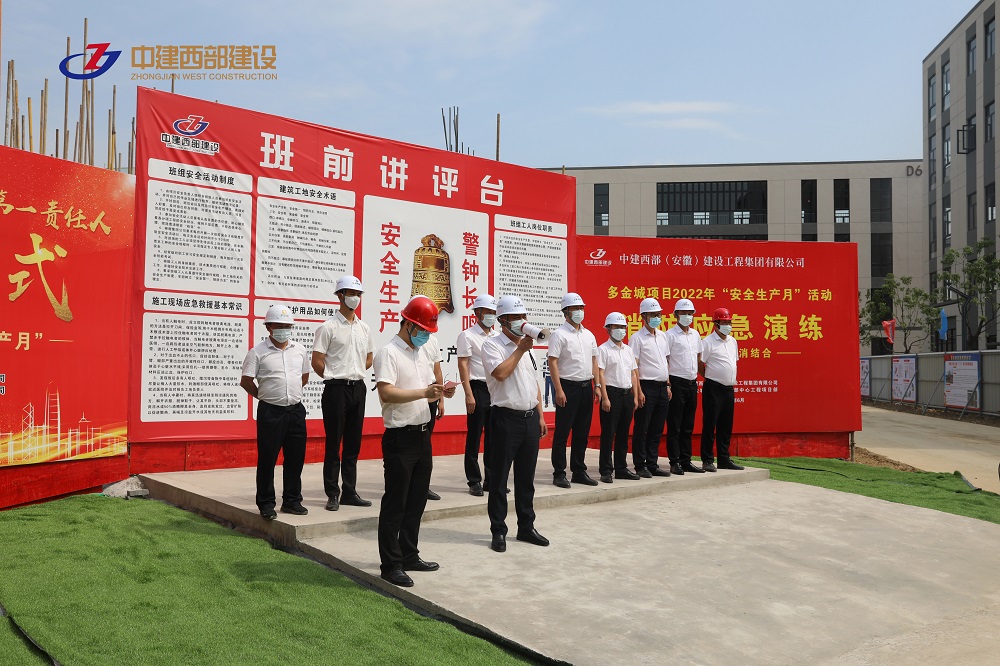 今年6月是全國第21個“安全生產月”,今年的主題是“遵守安全生產法,當好第一責任人”。為了認真貫徹國家有關部門及行業主管部門安全生產工作指示精神,大力推進中建西部建設集團各項安全生產工作的落實,提高全員安全生產意識,安全生產技能。2022年6月10日在多金城國際企業總部中心工程項目現場隆重舉行中建西部建設集團2022年“安全生產月”活動啟動儀式。同時,組織實施多金城國際企業總部中心項目消防應急演練。