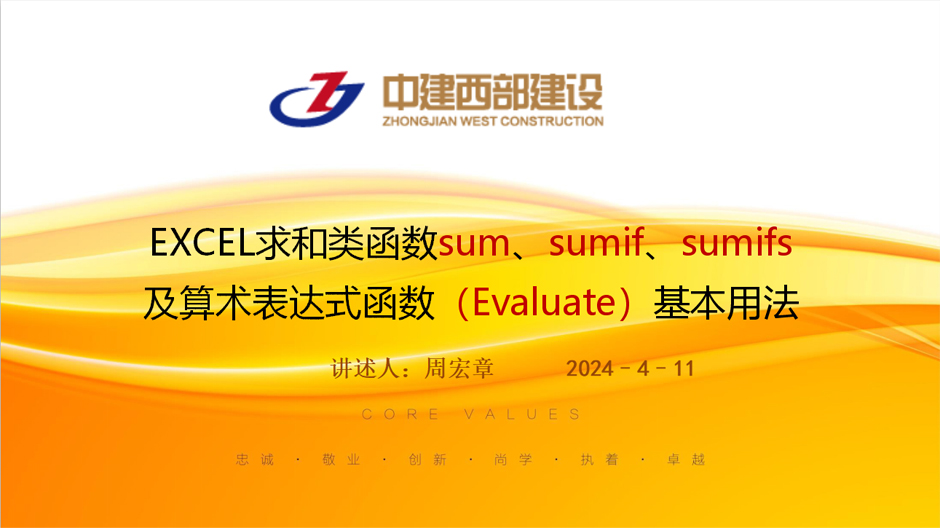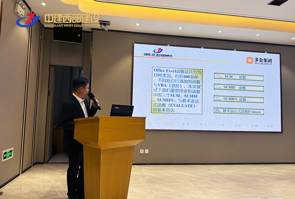 在數字化辦公的浪潮中,職工不僅需要掌握傳統工作技巧,還要應對日益增長的數據處理需求。Excel作為一款功能強大的電子表格軟件,其在日常辦公應用日益凸顯出重要性。為提升職工的數據處理能力和工作效率,4月11日下午4點,中建西部組織開展了Excel求和類函數基本用法的培訓,由成本部周宏章主講。