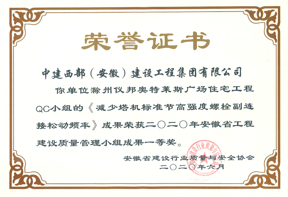 省級QC一等獎